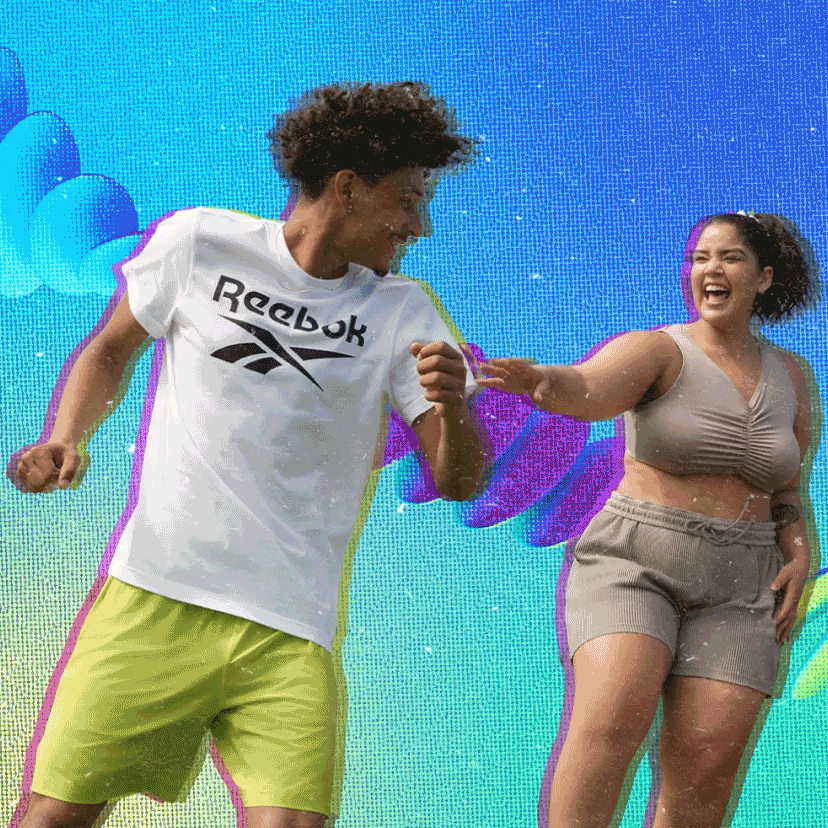 Building a set of playful and versatile creative assets. To showcase the product range, I designed an animated slot machine that revealed different items, paired with an animated rail featuring clothing pieces in motion. I also developed a quirky “little monsters” GIF series to emphasise that Reebok’s clothing styles are inclusive and made for everyone, regardless of size. Together, these elements formed a flexible creative toolkit that highlighted the brand’s timelessness while keeping the storytelling fresh and engaging.